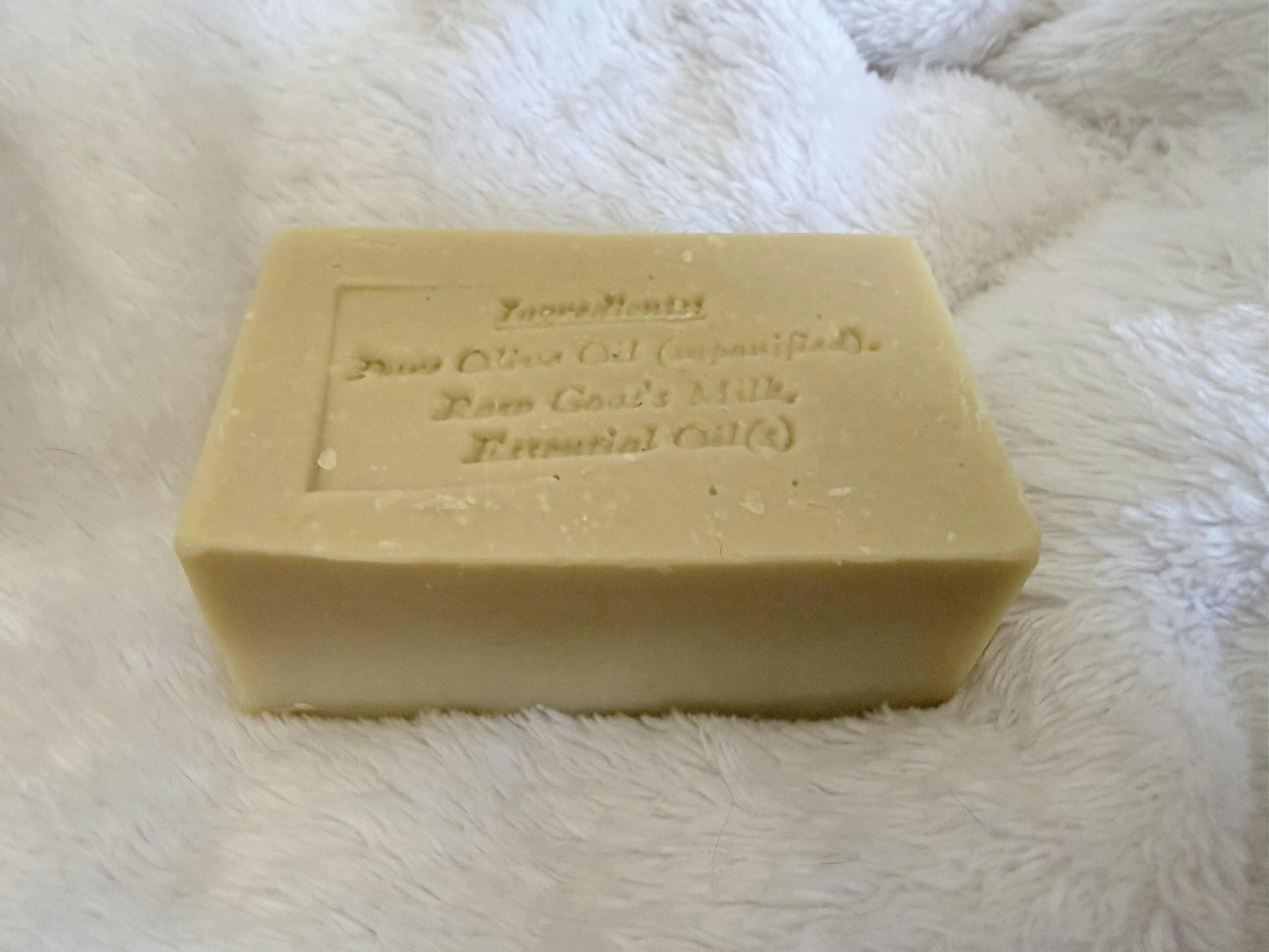 Ingredients: Saponified Extra Virgin Olive Oil, Raw Goat Milk, Pure Essential Oil of  Palmarosa and Lavender